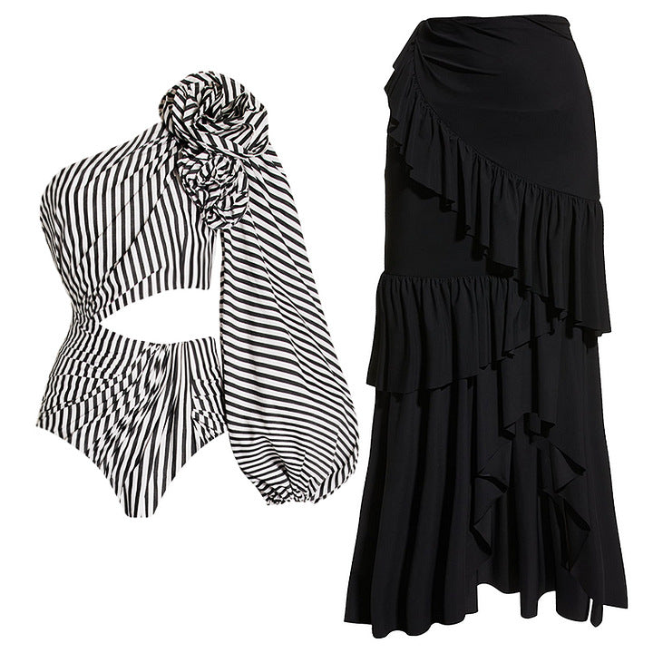 Your beach vacation wear is sorted with our Nyoka Swimwear. Comes with detachable sleevs. Style it with the skirt or just as is. We have both bikini and swimsuit.